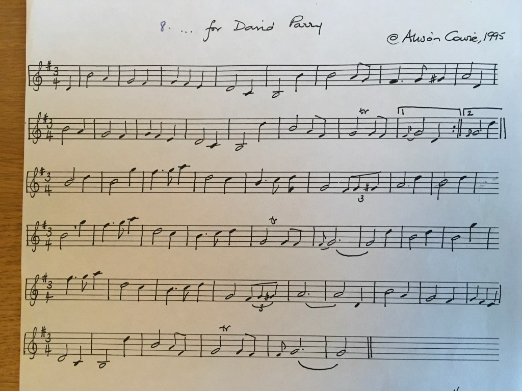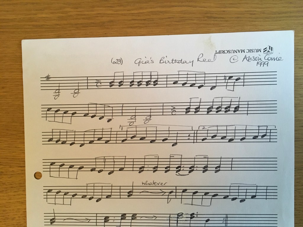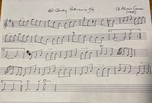- Sandy Paterson’s jig – another tune I failed to write down! One of my fiddle students. Actually…..Alison did write this tune down…We now have it…courtesy of Sandy Paterson of course!